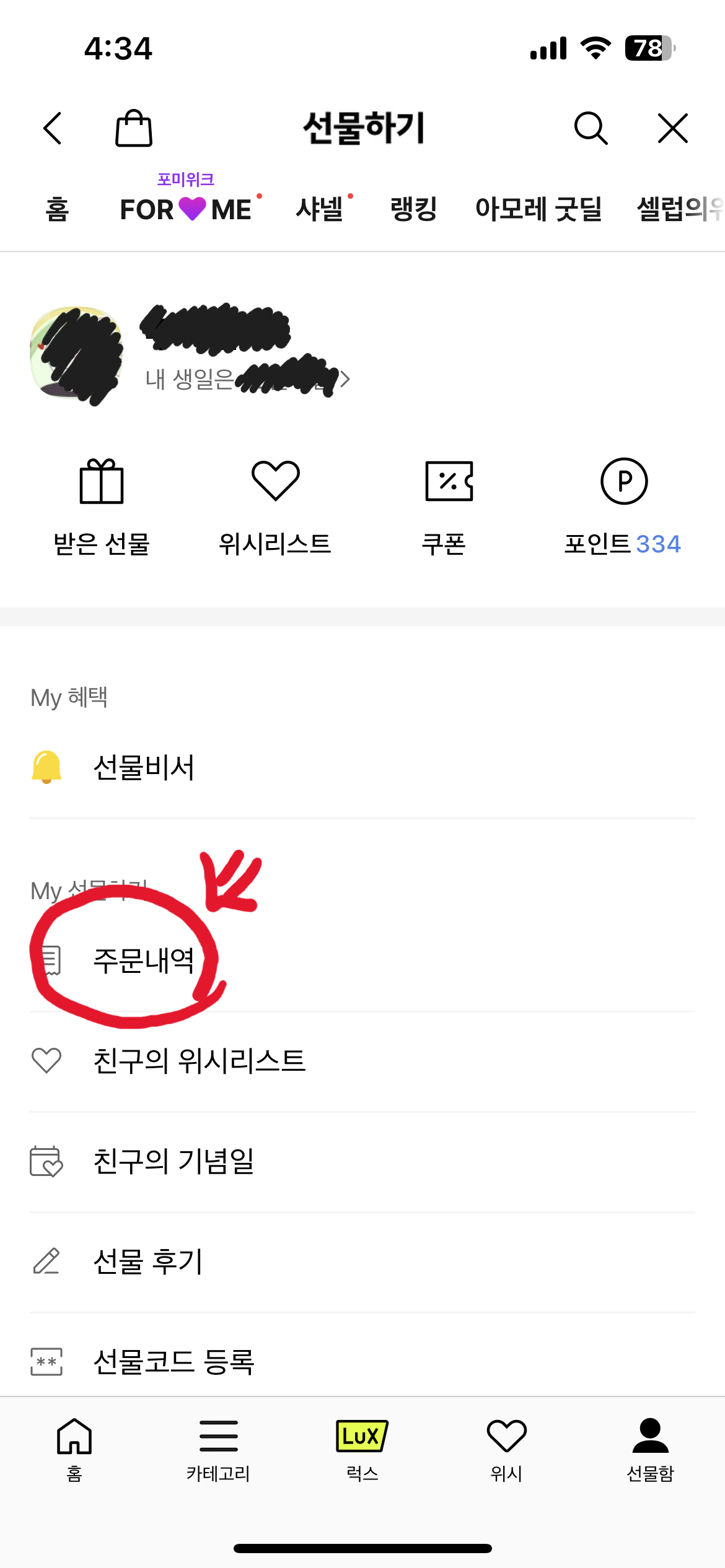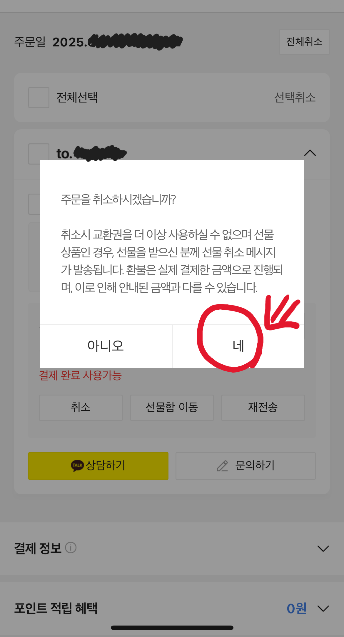 1. 카카오톡 선물하기 → 주문내역