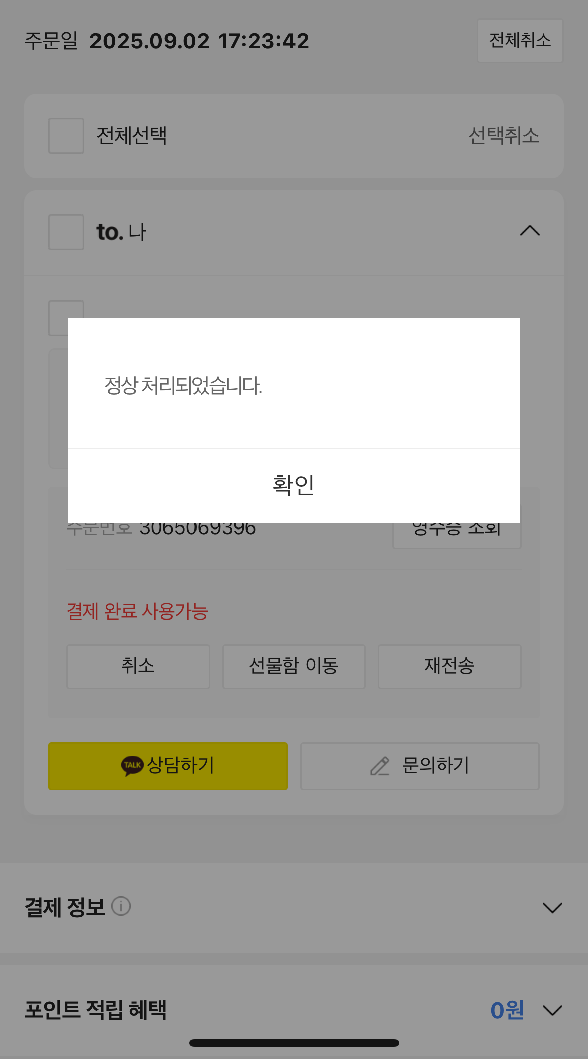 1. 카카오톡 선물하기 → 주문내역